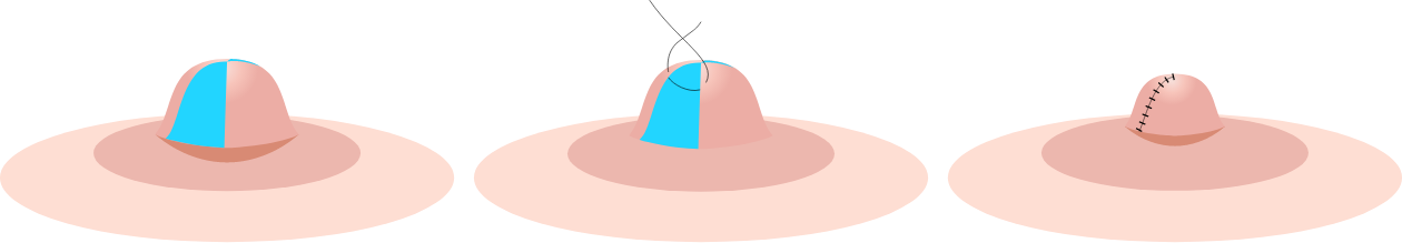 乳頭の先端部分をくさび形に切除し、先端を形成して縫合します。乳頭の長くなった部分と乳管を切除し縫合